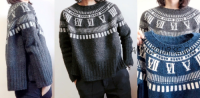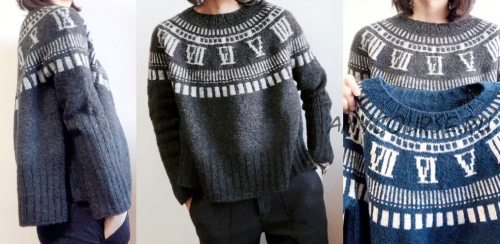 Сегодня мода сделала полный оборот, и на пике популярности снова знаменитые жаккардовые узоры спицами. Есть несколько направлений в вязании жаккардов: классические норвежские, с изображением животных и растительных мотивов, а также геометрические. Японский дизайнер Томоми Йошимото - автор интересных идей в жаккарде, которые набирают всю большую популярность. В данном случае - это одноцветный графический жаккард с изображением часового циферблата, японский минимализм в сочетании с современными тенденциями моды.