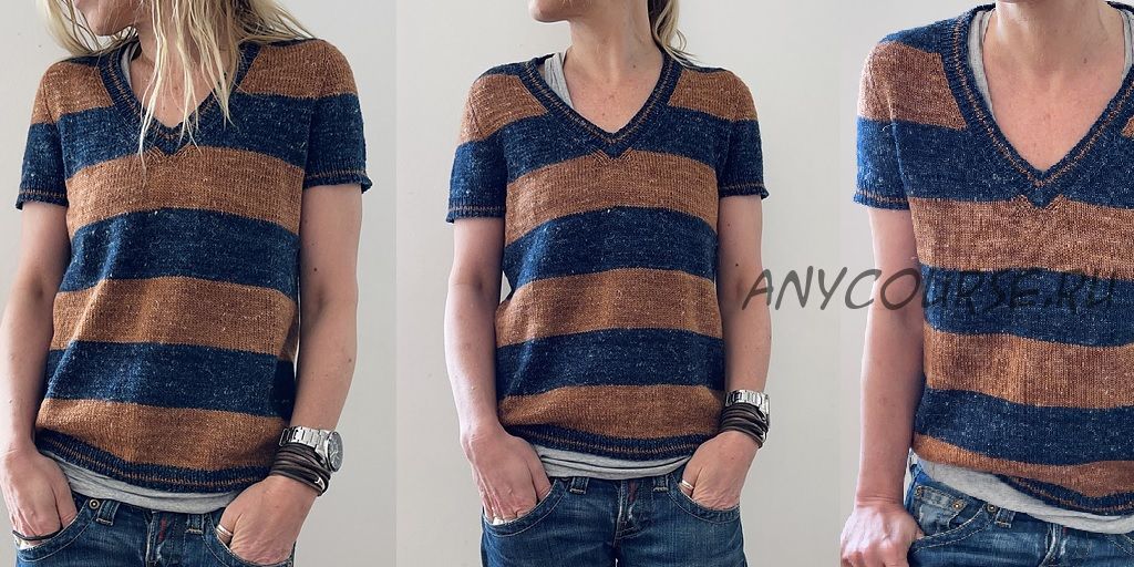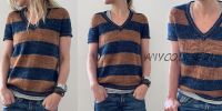 Универсальная модель топа прекрасно смотрится на любой фигуре и имеет безукоризненную посадку, благодаря плечу contiguous. Такой топ замечательно смотрится, как в полоску, так и в однотонном варианте, являясь отличной базовой вещью на любой случай. Такой топ вы свяжете очень быстро, потому что здесь не требуется сшиваний и подгонки рукавов и проймы. Замечательно смотрится пряжа с твидовым эффектом, придавая стиль и завершенность модели, вязаной простой лицевой гладью. Сочетание широких (на основном полотне) и узких (на резинке горловины, кромке низа и манжетах) полос добавляет стиля. Такой топ достоин быть в линейке лучших брендовых коллекций. Но самое замечательное - то, что вы сами своими руками можете связать его себе, не тратя огромные деньги на приобретение фирменной вещицы.