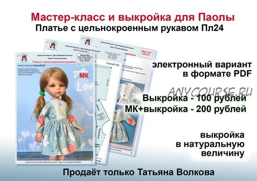 Выкройка платья с цельнокроенным рукавом. Простое в шитье платье. Лиф на подкладке. Выкройка в натуральную величину. 2 странице в 1 файле ПДФ. Если есть необходимость, можете взять мастер-класс.