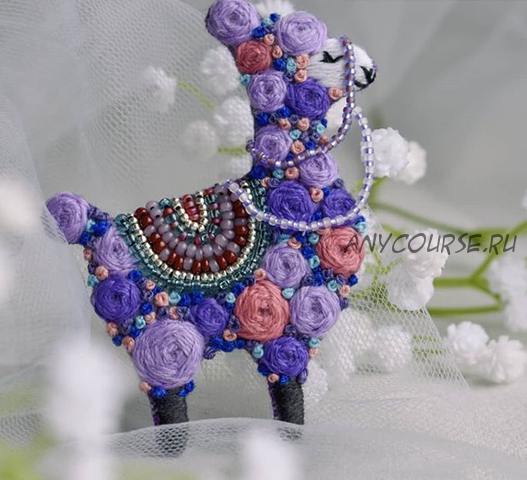 Вышитая брошь Лама (tut.mk)