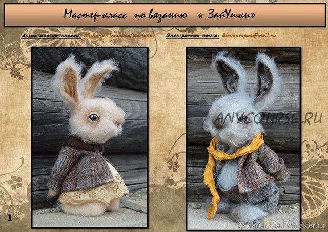 Предлагаю подробный мастер-класс по вязанию винтажных зверушек 'ЗайУшек' Подробное пошаговое описание вязания с фото. Мастер-класс содержит 29 страниц. Уровень сложности средней сложности .Размер игрушек связанных из заявленной пряжи 21 см .На проволочном каркасе.Мастер-класс не содержит уроков по вязанию крючком . Высылается в электронном виде на e-mail покупателя в формате pdf или jpg.