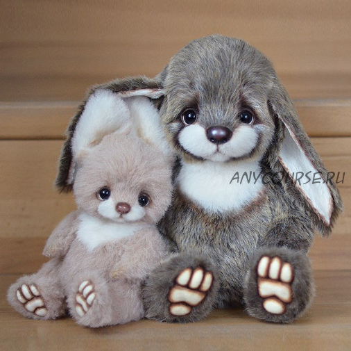 Вы получаете сразу две выкройки: для зайчика поменьше (25 см с ушками) и для зайчика побольше (35 см) + очень подробное (38 страниц) пошаговое описание процесса создания игрушки с использованием авторских приемов + несколько ВИДЕОРОЛИКОВ, в которых показан процесс стрижки мордочки, лап, тонировки.