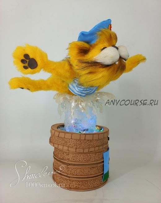 Довольный пушистый кот в форме ВДВ-шника сделан из меха, фома и пеноплекса.