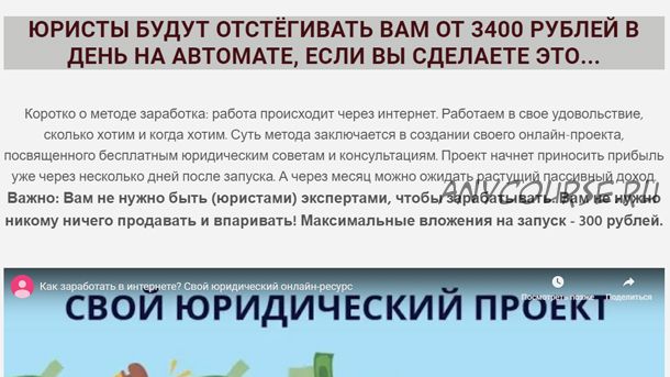 Заработок через Интернет. Суть метода - создание своего онлайн-проекта по бесплатной юридической помощи.