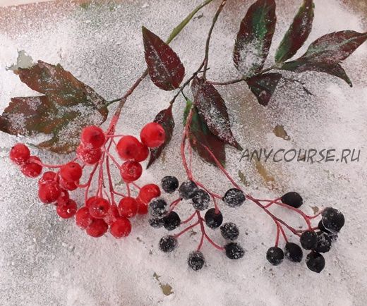 Лепка различных ягод, несколько способов заснеживания ягод и веточек с ягодами.