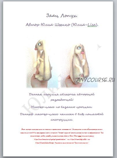 Подробный мастер-класс с пошаговыми этапами и множеством фото процесса в формате pdf.