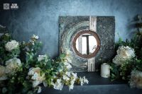 Это уникальное зеркало с сильным характером. Стилизованное под бетон, оно необычное и загадочное. Удивительная техника исполнения позволит вам создавать не только зеркала, но и часы, панно и прочие интерьерные детали.