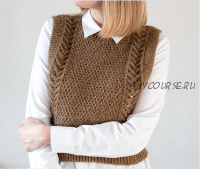 - файл Pdf с подробным описанием вязания каждого ряда, схемами узоров и детале жилета.