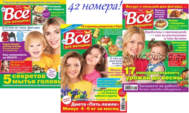 «Все для женщины» – самый популярный прикладной женский журнал, призванный облегчить и украсить жизнь своих читательниц. Дает оригинальные, но простые и актуальные советы по всем сторонам жизни современной женщины. Предлагает читательницам опыт других женщин и лучших экспертов. Журнал вдохновляет женщин, делая их жизнь насыщенной и комфортной. Более 100 идей в каждом номере.