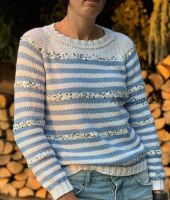 Очень подробный МК на базовую тельняшку из толстой пряжи (можно связать как с летней, так и с зимней пряжи, с полосками или без них, с добавлением/без добавления пайеток). В мастер-классе есть видео о том, как вязать полоски без ступенек. Тельняшка вяжется без швов, регланом сверху.