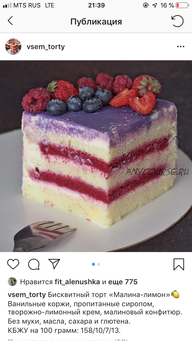 [change_yourself] Бисквитный ПП торт «Малина-лимон»