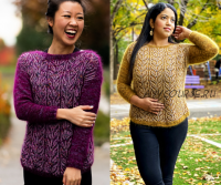 Кроме того, в описание входит дополнительный вариант по вязанию спинки лицевой гладью. Изделие вяжут прямо двумя деталями, затем сшивают матрасным швом по бокам и плечам, затем петли поднимают по краю проймы для рукавов и вяжут по кругу. Благодаря хорошей драпировке, спущенным рукавам и воротникулодочке, Broadleaf удобен и прост в носке.