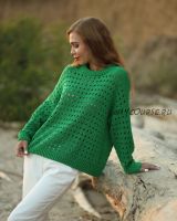 Вязание сверху вниз, плечи вяжутся поворотными рядами, после соединения переда и спинки вязание продолжается по кругу. Рукава набираются из проймы и также вяжутся по кругу.