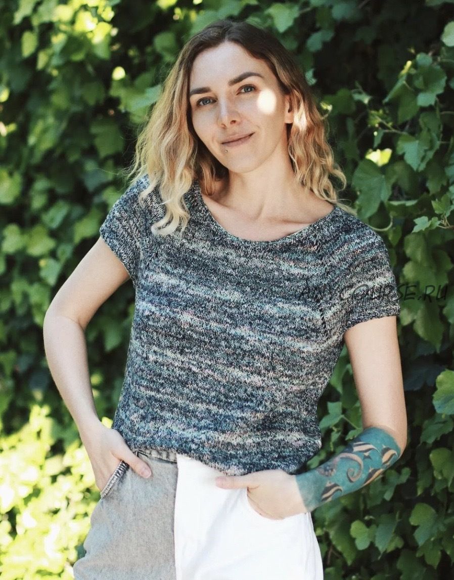 ? Вяжется сверху вниз, без швов, свобода облегания небольшая - около 5 см. Отлично подойдёт для новичков