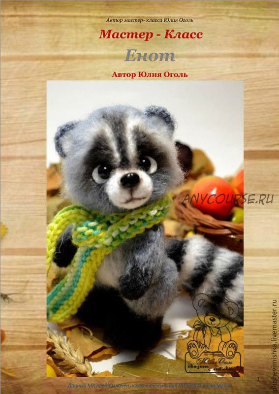 А давайте свяжем Енота... Игрушка вяжется на раз, два, три. Размер готового малыша из данной пряжи 18 см. Работа выполнена крючком. МК составлен на 18 стр печатного текста. + пошаговые фото. Формат PDF. Уровень работы средний .
