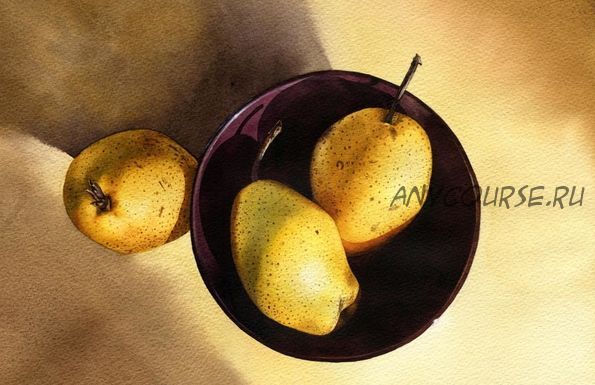 Научитесь писать акварелью натюрморт с аппетитными грушами.