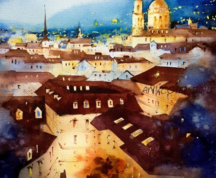 Извилистые улочки, рассеянный свет фонарей, панорама ночного города. В рюкзак акварельного туриста положите работу со светом и тёмными плоскостями, принципы изображения панорамы единым целым, без «грязи» и хаоса. Этот урок заключитесльный в серии 'Летнее путешествие с Надей Лойтлофф' - в нем примените всё, чему научитесь в предыдущих!
