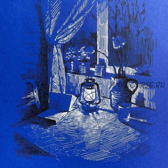 В первый час онлайн-трансляции мы нарисуем веточку яблони в стакане, как элемент украшения интерьера, а в основной части рисуем комнату, освещенную уютным светом керосиновой лампы.