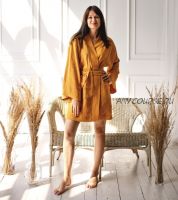 Халат-платье кимоно с поясом. Края переда отделаны подбортом. Рукава широкие, слегка расклешенные, с притачными манжетами.