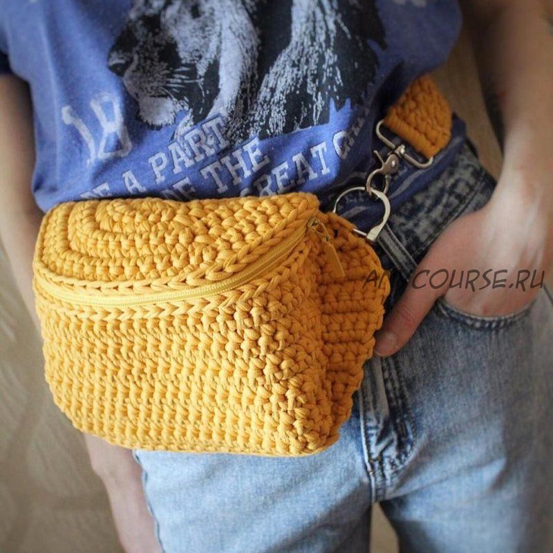 - 1 моток трикотажной пряжи на сумку и 0,5 мотка для двух ремней разной длины;