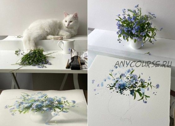 Задачей онлайн-практики будет живопись завершенного этюда букета незабудок в белой фарфоровой вазе. Вы сможете настроится на позитивный лад, творчество и живопись с натуры прекрасных цветов в наступившем летнем сезоне, и порадуете себя новыми акварельными открытиями.