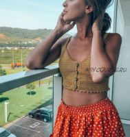 Описание содержит Два топа : один с пуговицами, другой сплошной с пайетками, на основе которого можно легко связать простой сплошной топ не используя пайетки. Так же он может быть использован в качестве верха к вязаному платью или сарафану, длину можно легко отрегулировать, и пришить юбку.