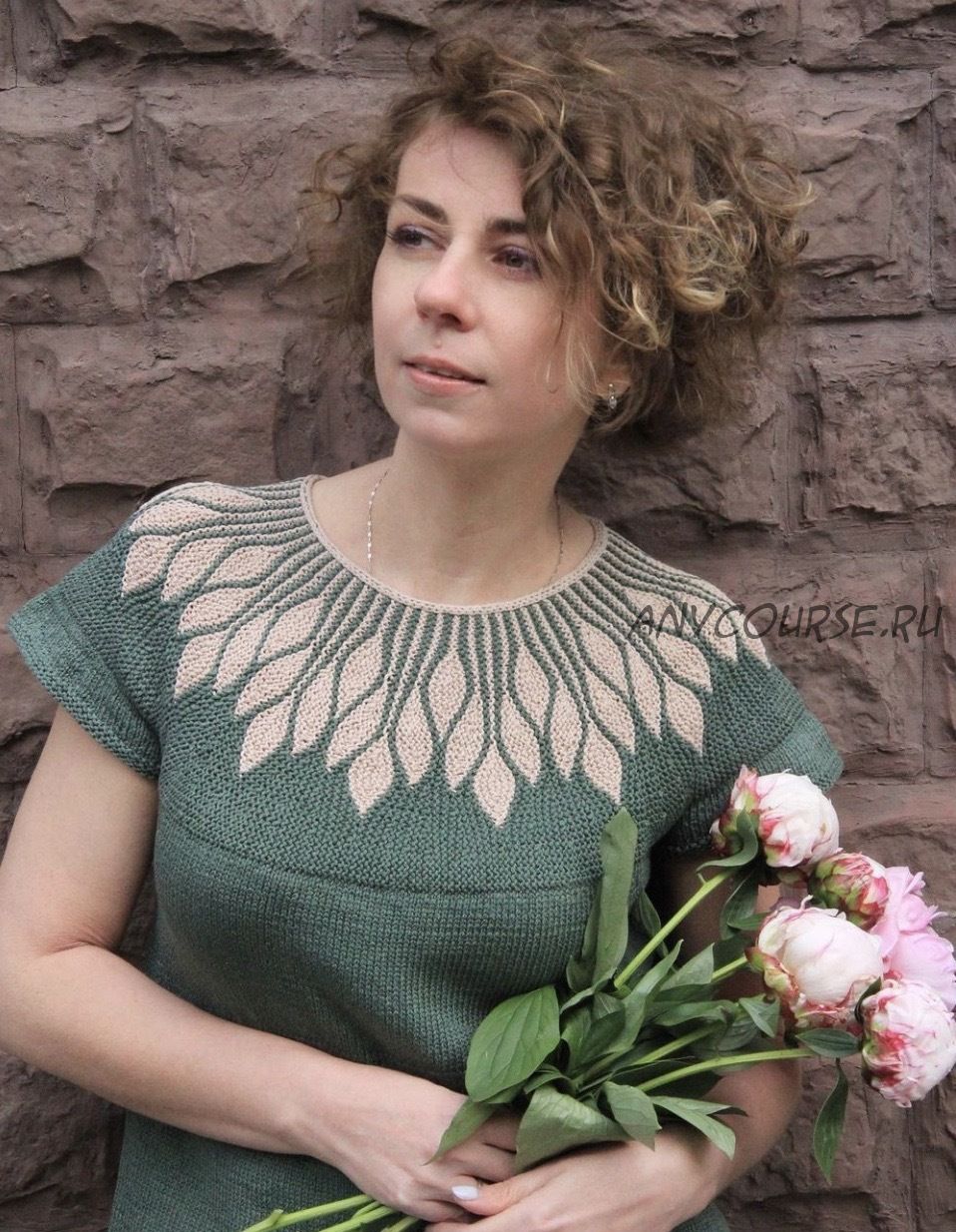 Затем вывязывается росток. Основное тело (прямого силуэта с горизонтальными грудными вытачками от взрослого размера №3 – по желанию, также дана инструкция по вязанию А-силуэта или приталивания) и рукава вяжутся от кокетки по кругу сверху вниз либо лицевой, либо изнаночной гладью.
