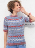 Вяжется легко и быстро за счёт гипнотического зигзагообразного узора. Ведь это настоящий конструктор из футболки с коротким рукавом, джемпера с длинным, туники А-силуэта, платья прямого или А-силуэта. Изделие с круглой кокеткой, выполнено структурным узором по всей длине изделия, прибавки, и росток вписан в узор равномерно.
