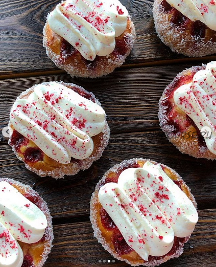 - Бриошь малина ( мармелад из малины, творожный крем со вкусом кокоса)