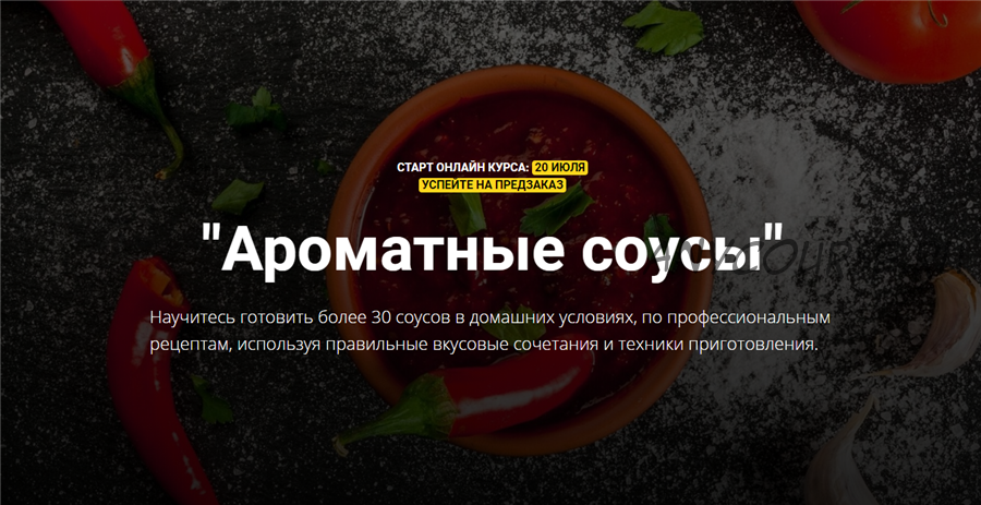 Нюансы и правила приготовления соусов в основе которых свежие овощные ингредиенты. Вы научитесь готовить 15 вариаций мощных, ароматных и вкусных овощных соусов.