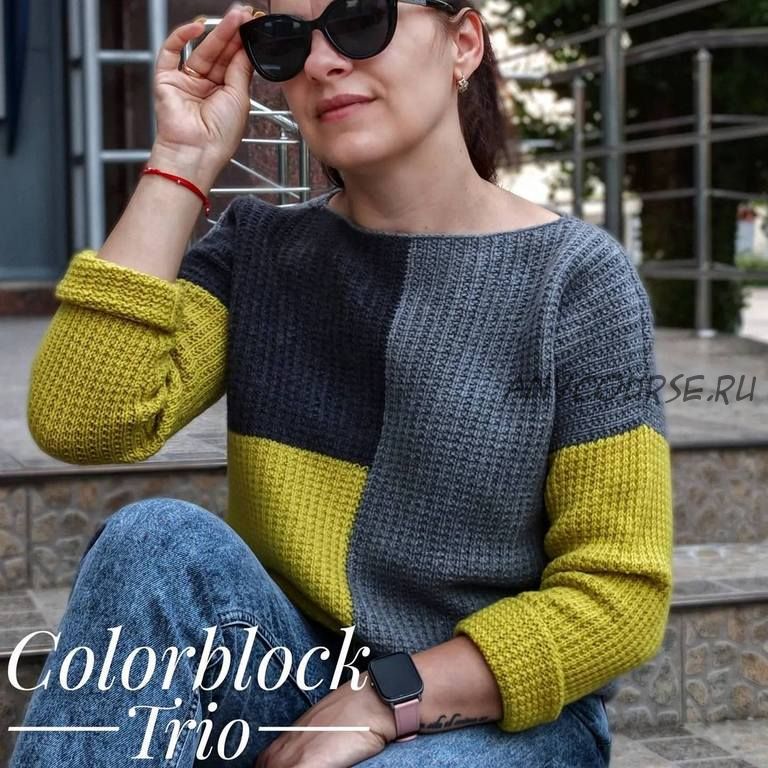 Встречайте джемпер тренд этой осени! Джемпер, с которым связано много эмоций, обсуждений и увлекательный процесс создания! На первый взгляд, простая модель, но очень стильная! Джемпер выполнен в стиле колорблок - это гармоничная комбинация разных цветов, в нашем случае их три, и для плавного перехода от одного цвета в другой здесь применяется техника интарсия, при которой не образуются протяжки на изнаночной стороне во время смены цвета. Идеальный на любую фигуру, рост и даже время года!