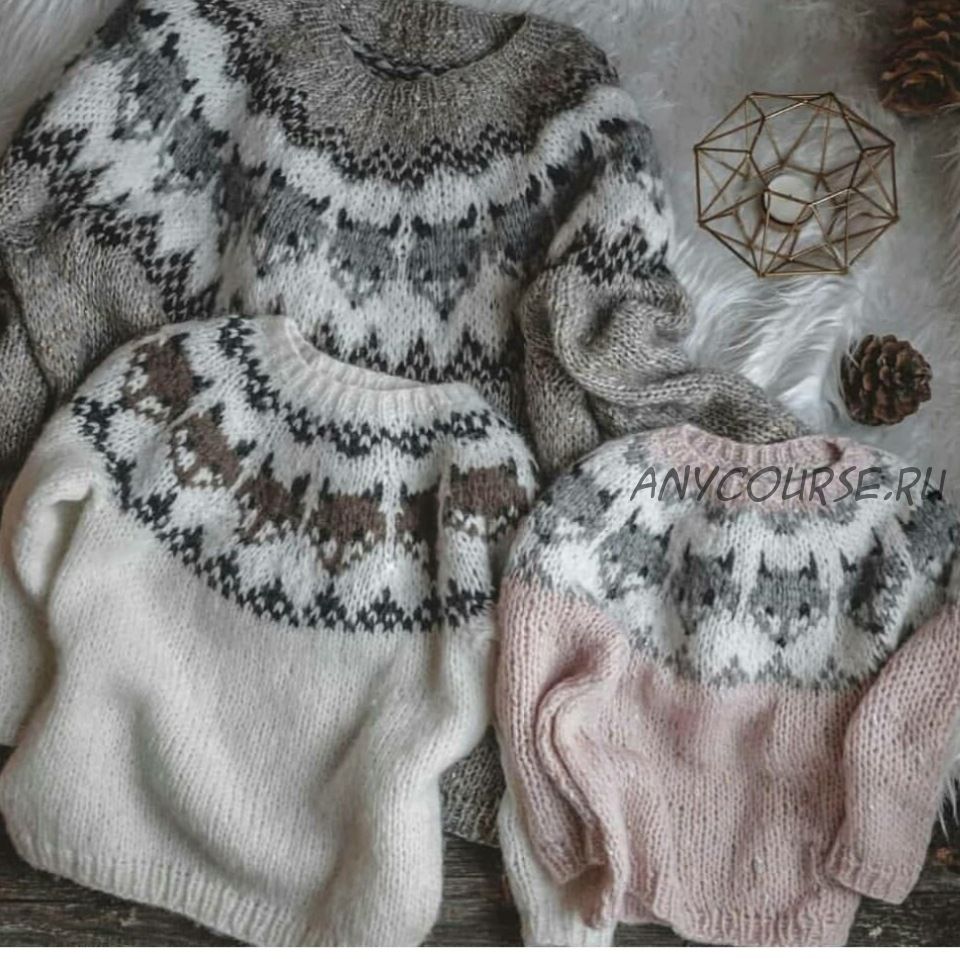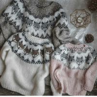Расход основного цвета 170/200/230/250/300/330 г; белого цвета - 15-20 г, остальных цветов (от 3 до 5 на ваш выбор) - по 10-15 г. Также, если вы захотите связать свитер с высоким горлом - основного цвета понадобится еще +50 г., на платье - расход от +60 г. и выше.