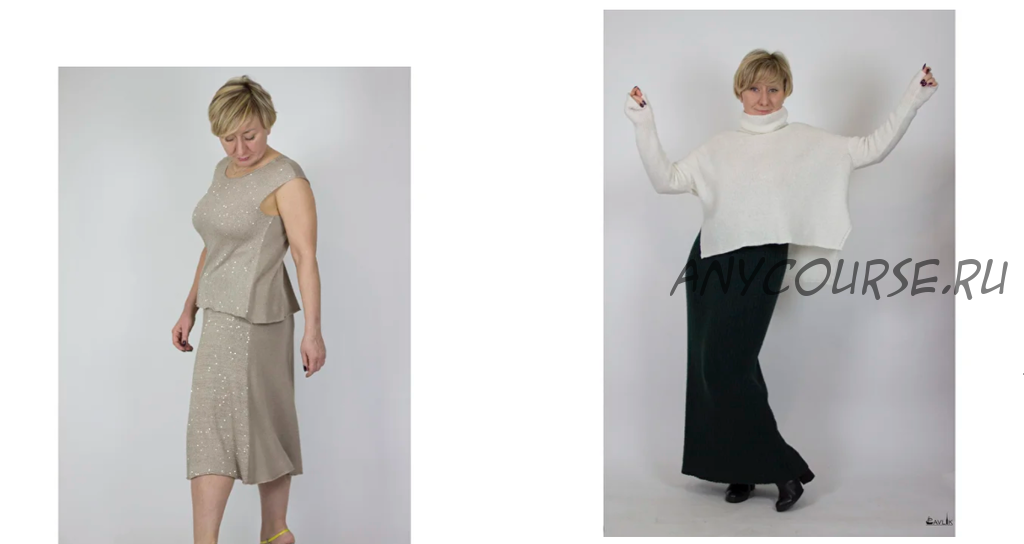 В курсе «Юбки» мы рассмотрим 5 юбок: шестиклинка в поперечном вязании «Сьюзен», классическая юбка-шестиклинка «Бри», прямая юбка с лампасами «Линнет», прямая юбка резинкой «Габриэль», ну и в заключении юбка-карандаш «Идди»