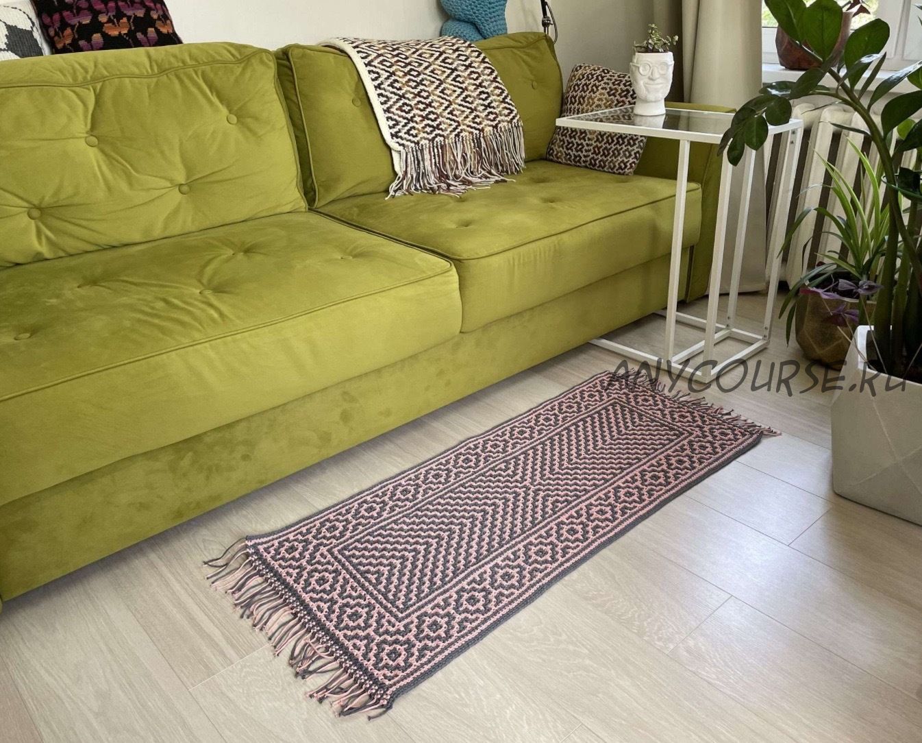 Изучите мозаичную технику вязания крючком на примере небольшого ковра-дорожки. Регулируйте размер в зависимости от плотности вязания и толщины материалов – в курсе я приготовила для вас удобные схемы, рассчитанные на разные размеры. Вам нужно только определиться с материалами, выбрать цвета и начать вязать!