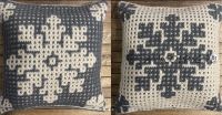 Берем классический универсальный новогодний мотив и крутим его со всех сторон так, чтобы просто и увлекательно связать практически все, что захочется: классическую подушку из центра, плед из квадратных мотивов (но без сшивания – вяжем из центра без диагональных ломок рисунка), а также изучаем новое направление в мозаике – мозаичную инверсию.