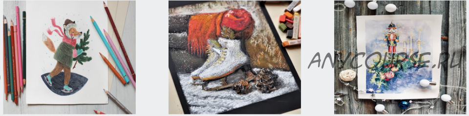 5 мастер-классов в разных техниках от 6ти талантливых художниц, рисуем акварелью, пастелью, цветными карандашами и маслом, учимся разным приемам на самых новогодних сюжетах!
