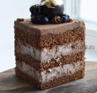 Бисквит на молочном шоколаде, мусс инжир, взбитый шоколадный ганаш.