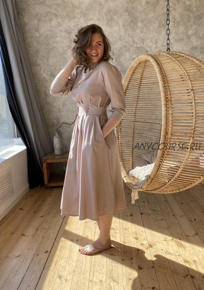 ? Платье Яна - А- силуэта шьется легко и просто. Талия подчеркивается складками, объем регулируется патами с пуговицами.