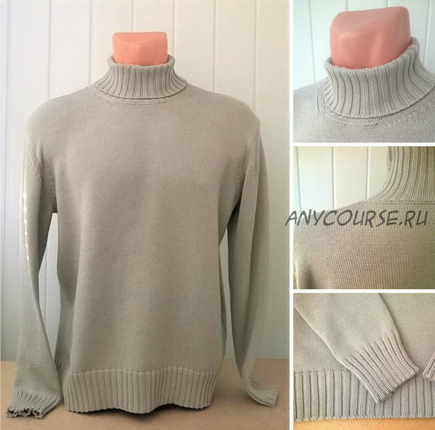 Содержание мастер-класса - вязание резинки 2х2, выполнение фасонных убавок при вязании проймы, оката рукавов и выреза горловины, ростка и плечевые скосов частичным вязанием (ЧВ) , воротник-гольф, ВТО (влажно-тепловая обработка) и последующая сборка изделия.