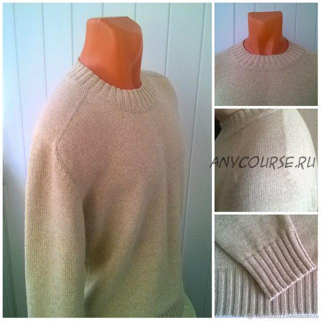 Описание - подробная иллюстрированная пошаговая инструкция процесса вязания деталей свитера, ВТО (влажно-тепловая обработка) и последующей сборки изделия.
