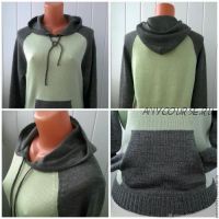 Содержание мастер-класса - использование фасонных убавок и приемов частичного вязания (ЧВ) при выполнении проймы, оката рукавов реглан, кармана, вязание капюшона и кармана 'кенгуру', ВТО (влажно-тепловая обработка) и последующая сборка изделия.