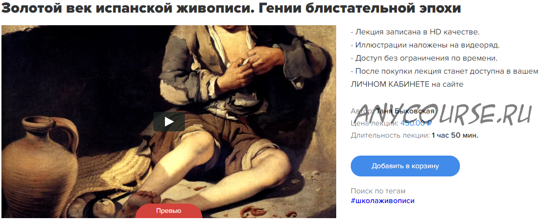 Веласкес и Рибера, Сурбаран и Мурильо, портреты и бодегоны, менины и мученики — вас ждёт одно из интереснейших занятий, которое абсолютно точно не оставит вас равнодушными к истории испанской школы.