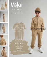 Выкройка комбинезона умеренного объема, приталенного силуэта. На передней части комбинезона накладные карманы, расположенные на уровне линии груди и линии бедер, и прорезные карманы на молнии. На детали передней части и детали спинки изделия притачные кокетки. Ниже кокетки на спинке складка. На спинке изделия шов на уровне линии талии. По линии талии широкая кулиска, переходящая с детали спинки на переднюю часть. В кулиску вставлена эластичная тесьма (резинка). Воротник – стойка. Застежка комбинезона на молнию, закрыта притачной планкой. Застежка планки на две пробивные кнопки. Рукав длинный, втачной. По низу рукава и брюк вставлена эластичная тесьма (резинка) в три ряда. По всем карманам, планке и стойке изделия проложены отделочные строчки. Длина изделия до щиколотки.