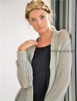 ? Драпирующийся кардиган, связаный спицами узором сетка из ленточной пряжи. Для вязания кардигана потребуется небольшой опыт вязания спицами.