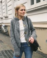 Стильная модель кардигана на каждый день от датского дизайнера вяжется легко и быстро. Благодаря фактуре нитей и эффектному сочетанию резинки и лицевой глади, кардиган смотрится модно и изысканно. Размеры: XS (S) M (L) XL. Окружность груди: 93 (99) 106 (113) 123 см. Длина: 52 (55) 58 (65) 67 см (включая подвернутую горловину).