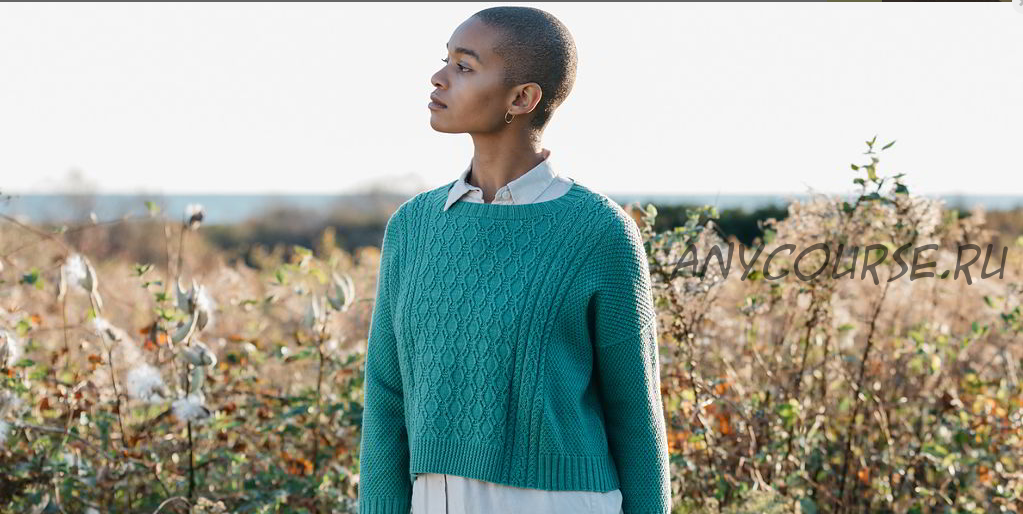 ? Женский пуловер под названием Island из коллекция Twisted Stitch Sourcebook от Норы Гоан смотрится словно связанный ирландскими косами и аранами, но это всего лишь имитация легендарных узоров. Широкая средняя полоса и обрамляющие ее боковые «косички» на фоне жемчужного узора поддерживают эту иллюзию. На самом деле в процессе вязания участвуют только перекрещенные петли, не требующие вспомогательных инструментов и спиц. Этот простой пуловер со спущенной линией плеча рекомендуется носить с припуском оверсайз от 10 до 30 см. Вы сами можете сравнить, как пуловер смотрится на Джордан с припуском 30.5 см или на Лили с припуском 15 см.