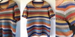 Топ от датского дизайнера вяжется обычной лицевой гладью, а чтобы вам не было скучно, раскрасьте его разными цветами. Полоски, сменяя друг друга, составляют ровное и приятное к телу полотно, которое подарит прохладу в жаркий день. Благодаря плечу contiguous, топ имеет отличную посадку, а свободный силуэт подарит комфорт и уверенность. Для любителей бесшовнго вязания и плеча contiguous - просто находка. Топ вяжется просто и быстро, под приятную беседу в дороге - то, что нужно!