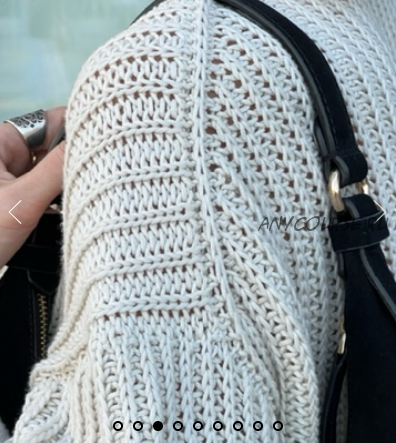 Отлично смотрится плюс удобная посадка и комфортный процесс вязания! Конструкция 'японское плечо', 2 варианта лицевой стороны, 2 варианта пряжи (хлопок и альпака), 2 варианта рукава.